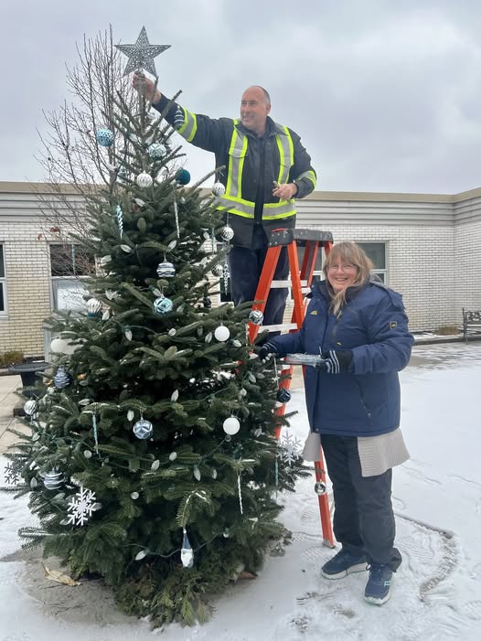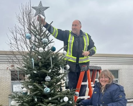 FCHS staff members Bryan Little and Denise Lutz added some cheer to the west courtyard with a beautiful fir tree donated by Sloan Nursery & Christmas Trees.